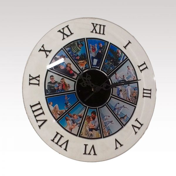 שעון שקוף בקוטר 25 ס”מ. העלו תמונה לכל שעה